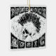 Skull of punk with mohawk on abstract grunge background. Inscription punk rock music.