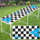 Not that I've had experience to buy that many beer pong or ping pong tables in my life, but I know a good quality product when I see it! This beer pong table is sturdy and solid and still lightweight enough to be portable. It folds and unfolds smoothly for easy storage or setup. From order to arrival here, the time was half of what was estimated, and that was during the holiday season. And -- most importantly -- the recipient LOVED it! I would definitely purchase this product again or other products by the maker Hampton Technologies , should an occasion to do so arise. The printing is beautiful! The blues and reds are deep and rich and the white "chalk look" is clean and crisp,. The photo (taken in low light) doesn't really do it justice. We know it's printed, but take a step back, and it really does look like chalk on a blackboard. To get the blue background like we did (instead of the traditional green chalkboard background), use background color #26306A. :)
