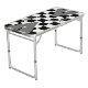 Not that I've had experience to buy that many beer pong or ping pong tables in my life, but I know a good quality product when I see it! This beer pong table is sturdy and solid and still lightweight enough to be portable. It folds and unfolds smoothly for easy storage or setup. From order to arrival here, the time was half of what was estimated, and that was during the holiday season. And -- most importantly -- the recipient LOVED it! I would definitely purchase this product again or other products by the maker Hampton Technologies , should an occasion to do so arise. The printing is beautiful! The blues and reds are deep and rich and the white "chalk look" is clean and crisp,. The photo (taken in low light) doesn't really do it justice. We know it's printed, but take a step back, and it really does look like chalk on a blackboard. To get the blue background like we did (instead of the traditional green chalkboard background), use background color #26306A. :)