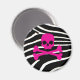 Punk hot pink skull with black and white zebra print background. By Brattigrl