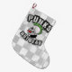 Perfect! Exactly what I ordered! I uploaded a picture of my blue chow, and the screen print was incredible. the back side of the stocking was the red and black checkered print. my puppy's name was also printed on the cuff of the stocking. PERFECT! Highly recommend this product! My puppy's name was screen printed onto the cuff of the stocking, the font was perfect!