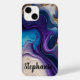 Purple Marble Rose Gold Name Script Case-Mate for Apple iPhone: A stunning combination of style and protection. This exquisite case showcases a purple marble design with elegant rose gold accents and a personalized name script. Elevate the look of your iPhone while keeping it safe and secure