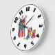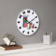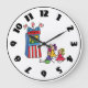 Everyone loves a good puppet show. This design is a fun one of some kids watching a puppet show. The puppets are in a little booth with the word puppets written on the top. The three kids are sitting watching. This puppet show design looks great on this clock. Perfect for yourself or as a gift