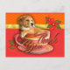 A puppy sitting in a cup with floral corners greeting card. Easily add your own message to the inside