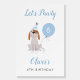 Fun boy's birthday party welcome sign featuring illustration of a puppy with blue balloon and party hat. The text says "Let's Pawty."