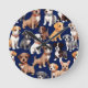 Puppy Dog Navy Blue Pattern Design Round Clock