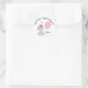 Celebrate your child's birthday with this cute puppy dog illustration with a party hat and balloon. Personalize this fun birthday sticker by adding your kid's name and age. The party hat and the balloon is in pink color.