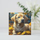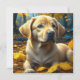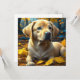 Cute puppy dog playing in yellow fall leaves magnet.