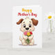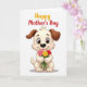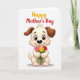 This card features a cute, puppy-like character with creamy fur, big brown eyes, and floppy darker-brown ears, standing alone on a white background. A faint blush on its cheeks and the gentle tilt of its head give it a shy, affectionate look, as if it’s offering a quiet thank-you ❤️. In its front paws, it holds a small bouquet of three roses, arranged close to its chest like a tender gift. The flowers include one pink rose, one yellow rose, and one red rose, each drawn with layered petals and soft shading. Near the top, the words “Happy Mother’s Day” appear in decorative lettering, with bright yellow and warm red used to make the message stand out. The open space around the character keeps the focus on the sweet exchange, like a friendly hug captured in a simple scene 🌼. The bouquet sits centered beneath the text, with the red rose slightly forward and the pink and yellow blooms tucked just behind it.