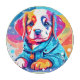 A colorful and cute art design of a puppy wearing a blue coat (This Design Made With AI). Place Order Today and Embrace the Joy of Shopping!