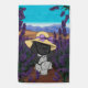 This garden flag features a beautifully hand drawn and colored scene of a gorgeous Landseer Newfoundland puppy dog, taking a stroll in a relaxing field of lavender complete with her big sun hat.