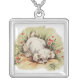 puppy in grass silver plated necklace