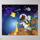 Artist by Zolotareva. Amazing adventures for little discoverers. Incredible journey. cosmos cartoon.Dog astronaut and alien. Caravans of cosmic ships with Dog on board leave in search of a replacement planet.