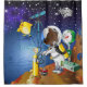 Artist by Zolotareva. Amazing adventures for little discoverers. Incredible journey. cosmos cartoon.Dog astronaut and alien. Caravans of cosmic ships with Dog on board leave in search of a replacement planet.