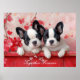 Celebrate the joy of love and companionship with "Puppy Love: Together Forever", a heartwarming artwork featuring two adorable Boston Terrier puppies peering over a charming red fence. With their paws hanging playfully and heads slightly cocked to one side, these cute pups exude an endearing charm that melts hearts. Surrounded by vibrant red flowers, they create a delightful scene against a soft pink background that radiates warmth and affection. The text, “Together Forever,” can be personalized to your liking (such as "John and Jane"), and adds a romantic touch, making this piece perfect for expressing love and friendship. This artwork is an ideal addition to any space that seeks to inspire joy and sweetness.