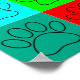 Cute dog paw prints cartoon style in colorful squares.