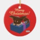 This little chihuahua puppy is sleeping on a present on Christmas Eve, waiting for Santa to arrive!