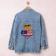 Puppy Wearing Sunglasses USA Flag Heart Womens Denim Jacket