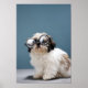 Puppy wearing thick glasses poster