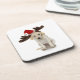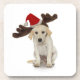 Puppy with Santa Hat and Reindeer Ears Beverage Coaster