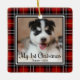 This lovely puppy's 1st Christmas photo ornament with a red plaid edge, the words "My 1st Christmas", your pup's name and the year will look beautiful on your tree. You'll cherish it and enjoy taking it out every year to put on your tree.