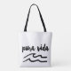 Costa Rica souvenir tote bag printed with the words "Pura Vida" in black with cute wave design. Pura Vida means "pure life" in Spanish.
