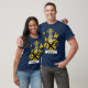 My 11 yo wore adult XL (5’7” 165#). The 8yo is small framed. She wore adult small and tied it in the back. Grandma wore adult large with long sleeve shirt underneath. Tall girl adult medium. Dark haired male adult large. Good quality dark Heather gray, Gildan brand shirt. -it was next up from basic choice and cost about $20 per shirt. Not too thick or thin. Washed and dried well, no major shrinkage. Not see-through. Can wear a bra under it fine. Screen print is just as shown and well done, front and back.