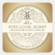 Classy ivory and taupe label with ornate 19th century French filagree design and 14th century British heraldic bee on a gold gradient backdrop.