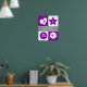 Personalized gymnastics poster with purple and white squares filled with gymnastics silhouettes of the opposite color. It also has a easy to customize text field to add a name before you order!