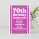 Having your Purple 70th Birthday Invitation match the theme of your party is a great detail that your guests will appreciate. The thoughtfulness of a consistent party theme is often appreciated and can show your guests that you can host a cohesive event.