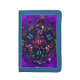Beautiful and Stylish Blue Trifold Wallet Featuring our Purple Colorful Abstract Flowers & Music Design - Matches with our Fanny Pack of the Same Design!