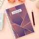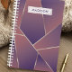 Elevate your organization with this personalized planner featuring a captivating purple geometric design. Its modern aesthetic complements the busy professional while the customizable name or logo adds a unique touch. Perfect for the creative individual who appreciates both style and function, this planner offers ample space for appointments, notes, and to-do lists. Stay on top of your goals and schedule with this eye-catching planner that makes a stylish statement.