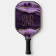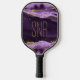 Elegant, stylish personalized pickleball paddle featuring purple agate, geode and marble with faux gold glitter with a monogram, initials or name shown in an editable modern font style in gold. ASSISTANCE: For help with design modification, personalization, color change or transferring the design to another product, contact the designer BEFORE ORDERING via the Zazzle Chat MESSAGE tab below or email makeitaboutyoustore@gmail.com.