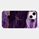 Elegant purple agate, marble and gold glitter cell phone case personalized with a monogram in a chic calligraphy script in gold and name in white. The design is shown on an iPhone 14 and Barely There case style--other phone models and case styles are available on the ordering page. ASSISTANCE: For help with design modification, personalization, color change or transferring the design to another product, contact the designer BEFORE ORDERING via the Zazzle Chat MESSAGE tab below or email makeitaboutyoustore@gmail.com.