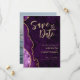 Elegant photo save the date card with purple marble agate with gold glitter wedding save the date card.