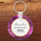 A birthday / event thank you key chain with an elegant abstract design. Dark purple amethyst color with ribbons of gold nestled between layered strata. Rich and beautiful design. Layered over top is a white circle frame with a faux gold foil border, with your personalized text inside.