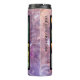 Thermal tumbler with family photo collage on purple amethyst gemstone pattern.