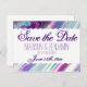 Purple and Aqua Abstract Wedding Save the Date Postcard
