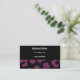 A bold design on a black background. A border of purple and black leopard pattern accents it. Customize with all of your business information as desired.