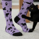 Show off your love for cats with our Purple and Black Personalized Socks! These charming socks feature a playful black pattern of paw prints, cat silhouettes, and hearts set against a soft light purple background. Each pair is personalized with a custom name printed at the top, making them a thoughtful and fun gift for cat lovers. Perfect for everyday wear, cozy lounging, or as a special present for any feline enthusiast.