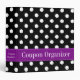 Personalized Coupon Binder. A trendy black and white polka dot pattern with a purple accent is featured on this coupon binder that you can easily personalize. Makes a great gift for any couponer! Don't see the color you want? Use the contact link above to request your FREE color combination.