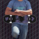 The tree design on this skateboard deck is in black and purple and there are customizable initials. The picture is of a Hawthorn, from Glastonbury, England. A nature themed skateboard design.