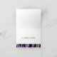 A modern design featuring a black background accented by a border of purple and black zebra stripes across the top. A shaded purple band accents it.The words 'thank you' can be changed as desired. Inside message also!