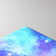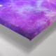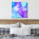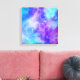 Canvas print with a cosmic abstract background. Swirling vibrant colors of light blue, pink and purple. White stars scattered around.