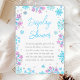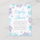 This elegant and glamorous display shower enclosure card features watercolor purple and turquoise blue faux glitter snowflakes and sparkles on a white background. It is perfect for a winter or Christmas themed baby shower.