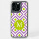Purple and Chartreuse Ikat Pattern Monogrammed iPhone 15 Pro Max Case