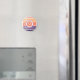 The bright purple and coral brush stroke pattern adorn the front of the magnet.