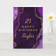This elegant and glamorous birthday card can be personalized with a name or title such as mom, daughter, granddaughter, niece, friend etc. The design features a purple agate marble background with faux gold glitter accents. The text combines handwritten script and modern sans serif fonts for a classy and sophisticated look.