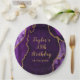 This elegant and glamorous birthday plate features a purple agate marble background with faux gold glitter accents. The text combines handwritten script and modern sans serif fonts for a classy and sophisticated look. This will be perfect for autumn fall and winter birthday parties.