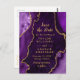 This elegant and glamorous save the date invitation features a purple agate marble background with faux gold glitter accents. The text combines handwritten script and modern sans serif fonts for a classy and sophisticated look. This will be perfect for autumn fall and winter weddings.